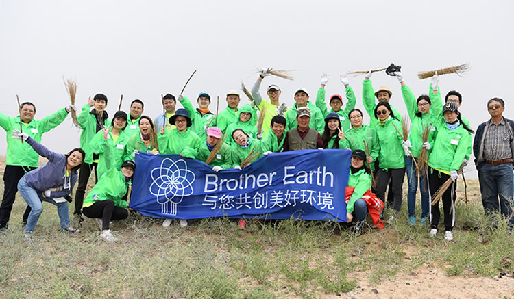 自2012年起,兄弟(中國)啟動內(nèi)蒙古防沙漠化項目,組織志愿者深入內(nèi)蒙古阿拉善地區(qū),開展植樹活動,并支持改善沙漠化的相關(guān)活動和研究。